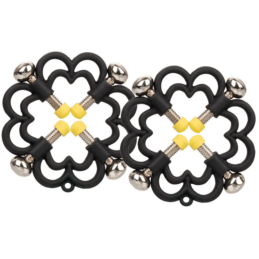 Craving a little/a lot of nip pinch? Great! Now, when it comes to nipple clamps, you have tons of exciting options. You've got your standard alligator clamps, some clamps vibrate, others are spring loaded - our point is that your or your partner's nipple play possibilities are nearly endless. If you're after a unique pair with a (literal) twist, CalExotics has you and your nipples covered with the 4-Point Press Nipple Grips from Boundless.