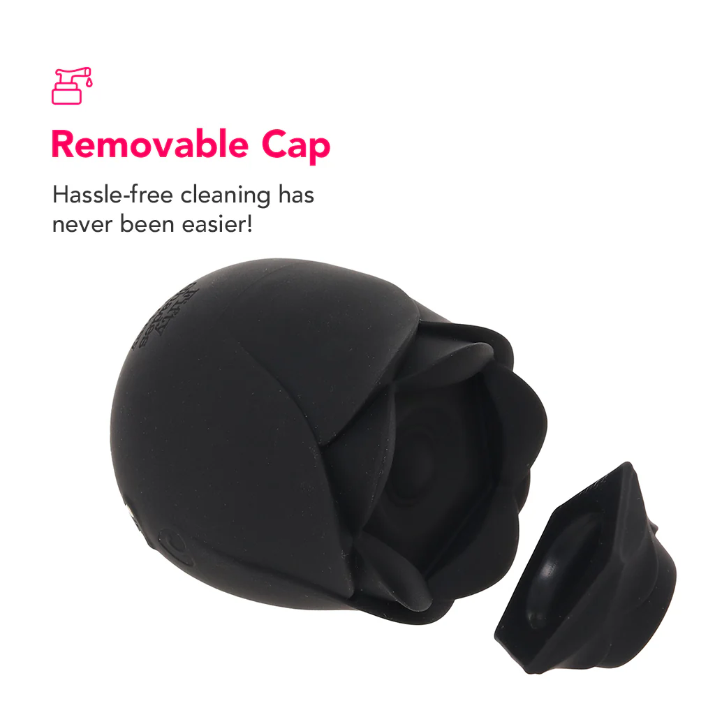Made from body-safe black silicone, the Hearts & Flowers Rose Vibe is hypoallergenic, non-reactive, and safe for sensitive skin. Use with water-based lube only.