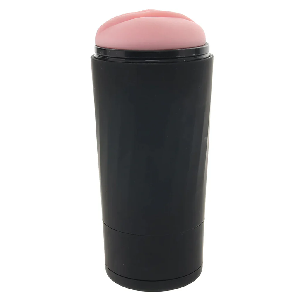 Inside a stealthy black case with a no-peeking cap, the Realistic's ultra-soft sleeve invites you into some pretty pussy lips. Dive deep to feel the VERY stimulating texture and sexy suction. Speaking of suction, this Stroker has eight airflow control vents—twist a wheel at the base to adjust the sleeve's grip.