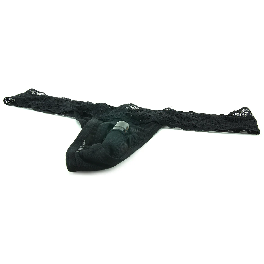 Beautifully designed with a soft, stretchy lace waistband, a cotton lining and a glittery rhinestone 'H' charm, these panties boast a bare-all thong style that won't leave telltale lines under clothing, and let a lover's hands roam unencumbered. They can absolutely be worn as lovely lingerie sans vibrator, but the combination is truly blissful. Simply slip the vibe into its pocket, leaving the base pointing upward for easier control. As for the petite bullet, it's firm and precise, nestling unrelentingly against outer sweet spots, whether worn in the panties or manually maneuvered in hand.